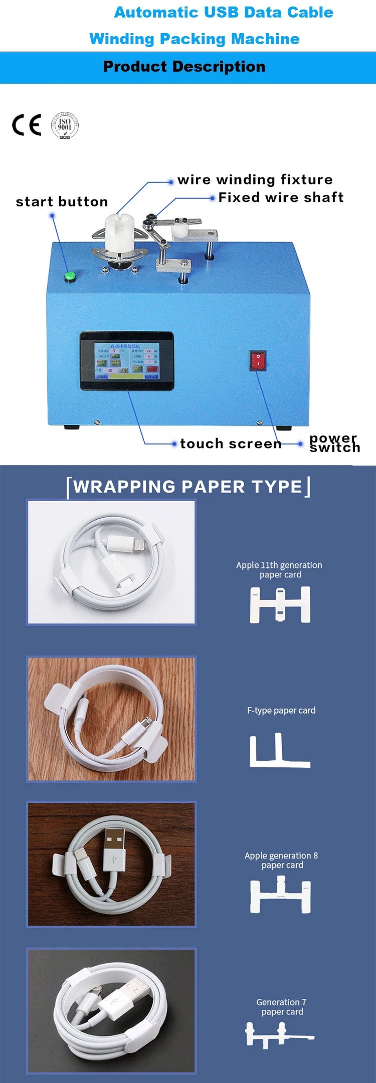 Denna USB-datakabellindningsmaskin använder automationsteknik, som effektivt och prydligt kan linda och packa USB-datakabeln, vilket avsevärt förbättrar arbetseffektiviteten. Den har fördelarna med kompakt struktur och enkel funktion. Ladda helt enkelt USB-datakabeln så kan du slutföra hela processen från lindning till förpackning med ett klick. Lindningsstyrkan kan justeras för att säkerställa att USB-datakabeln inte deformeras vid packning. Hela maskinen täcker ett litet område och är lämplig för alla typer av arbetsmiljöer. Det hjälper dig att förbättra produktionskapaciteten och minska arbetskraftskostnaderna. För mer information, vänligen kontakta oss.